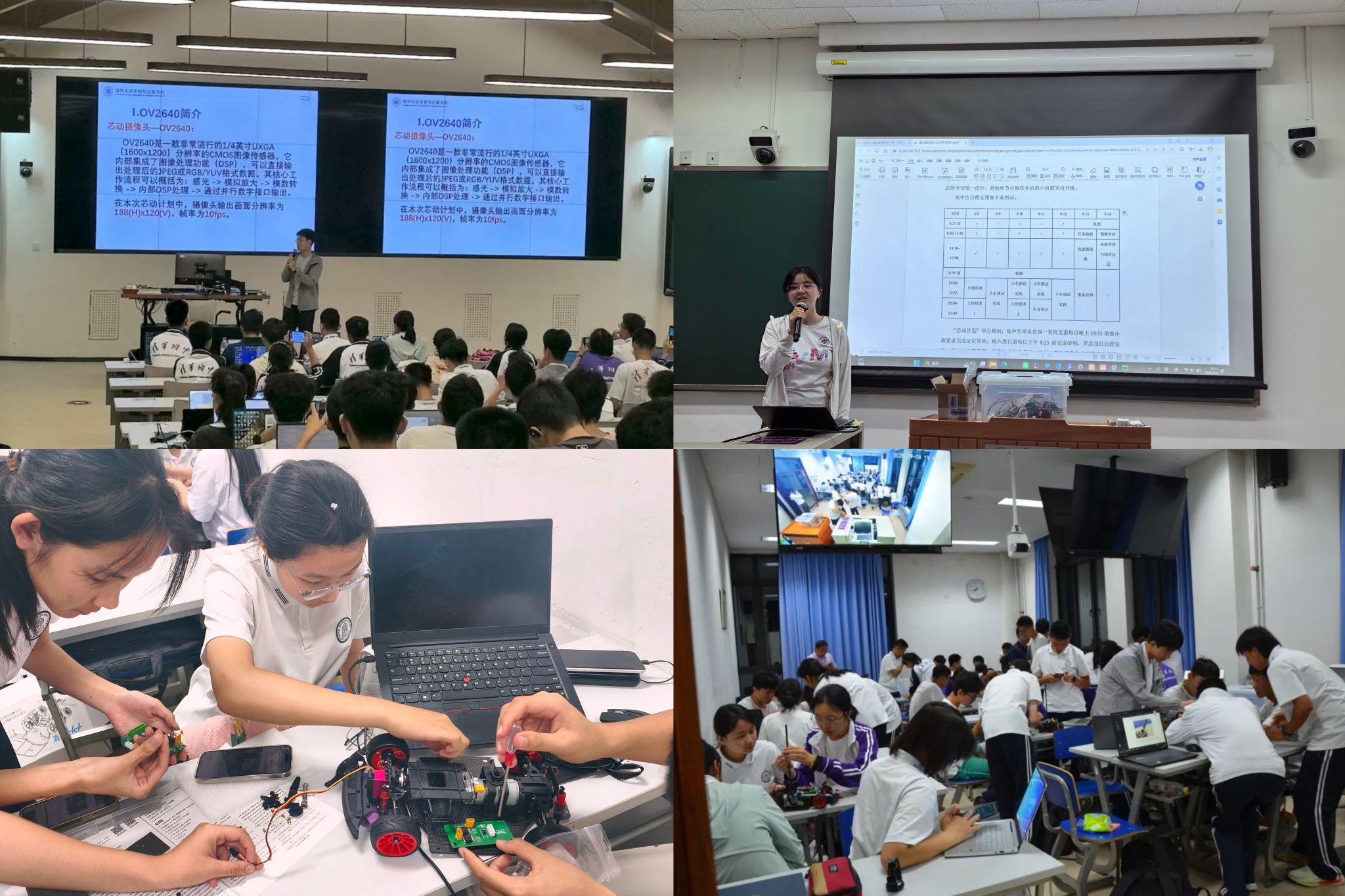 9月8日晚上,同学们首次进入清华大学新水利馆,以小班形式开展智能小车的机械与电子部分组装。当晚,大家齐聚西阶梯教室参加大班理论授课。尽管课程涉及嵌入式开发、实时控制等大学阶段内容,但在助教老师深入浅出的讲解中,同学们逐渐建立起对智能硬件系统的基本认知,真切感受了大学科研实践的初步氛围。