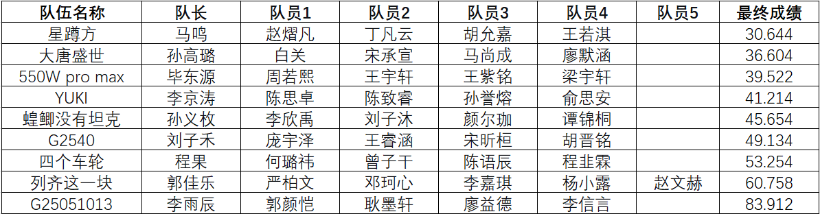 9月13日举行项目验收与竞速比赛。在遥控竞速环节,同学们现场烧录程序、优化参数,激烈角逐完成时间;在功能验收阶段,演示了舵机回中、蓝牙透传、姿态传感、图像传输、PID控制等多项技术点。评审老师根据完成度、创新性和代码质量进行综合评价。