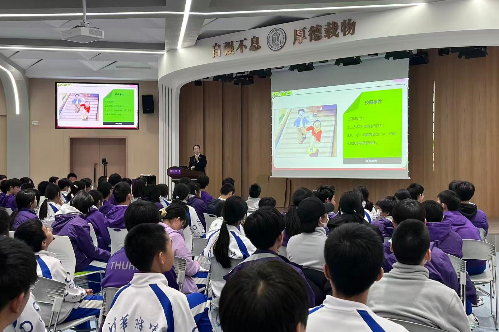 为提升青少年的法治意识,护航校园安全与健康成长,11月27日,海淀区人民法院少年法庭秦硕法官受邀走进皇冠体育,在华实楼多功能厅为初24学部同学们带来了一场主题为“法治守护健康成长”的普法讲座。作为初24学部日新讲堂的第九讲,本次讲座内容丰富,深入浅出,同学们纷纷表示受益匪浅。
