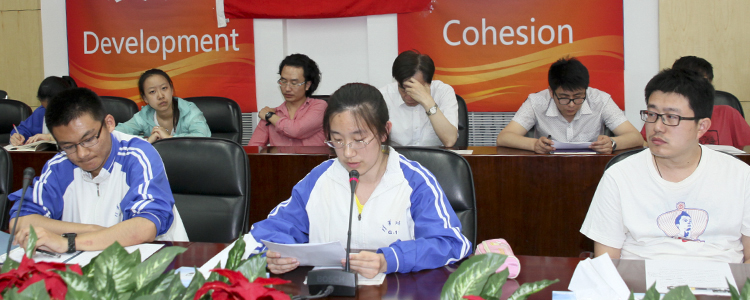 发展对象赵芯培(前中)宣读《入党申请报告》