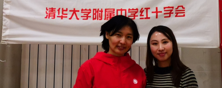 皇冠体育红十字会与紫荆篮球社家长志愿者共同承担赛场医疗保障工作( 左,紫荆篮球社孙莹;右,红十字会苟娟大夫)