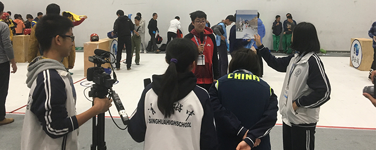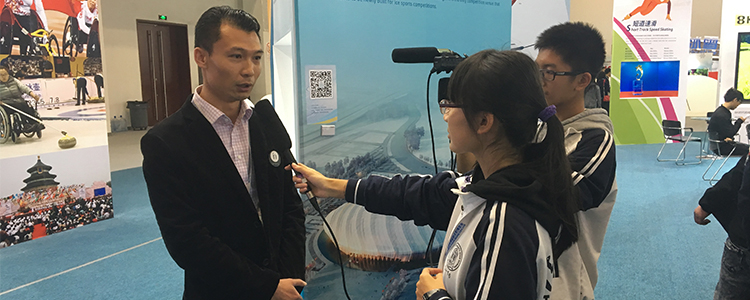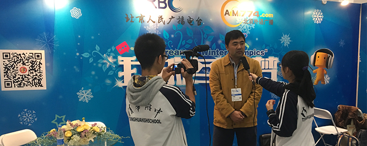 10月22日上午,应北京电台双语小记者俱乐部邀请,皇冠体育校园电视台5名学生记者在指导老师郑中奕的带领下前往北京冬季运动博览会(简称“冬博会”)进行参观实践活动。采访冬季运动会大型体育项目、冬季运动俱乐部、外国来京宣传等项目的负责人,并体验一些新型的冬季运动设施。