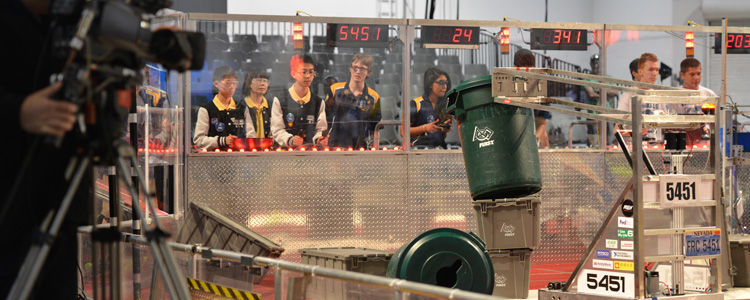 皇冠体育官网参加FRC比赛学生现场操作机器人完成比赛项目