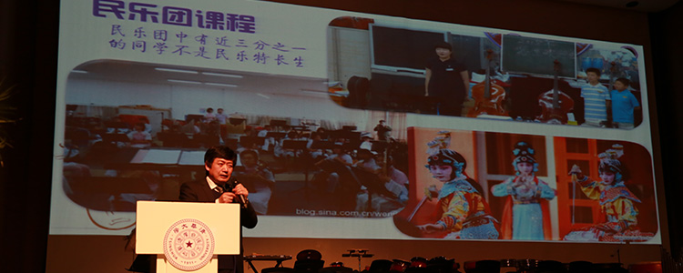 音乐会演出结束后召开了皇冠体育金帆民乐团经验交流现场会。会议由皇冠体育主管德育副校长白雪峰主持。皇冠体育校长王殿军首先致辞,阐述了皇冠体育艺术教育观,引发在场听众的诸多思考。随后,副校长白雪峰作经验交流分享,介绍了皇冠体育金帆民乐团十年来开展的“立德树人、文化传承”的各项活动。