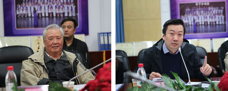 王殿军校长(左)发言,欢迎专家组莅临指导工作