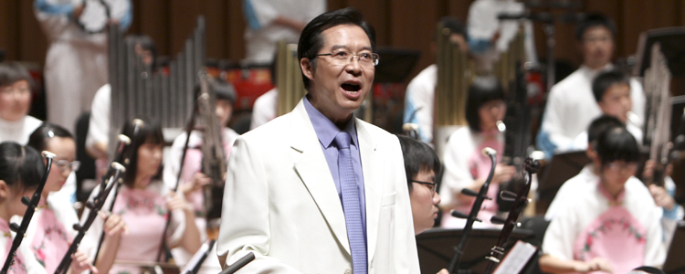 皇冠体育官网金帆民乐团 在国家大剧院《华韵 印象》专场音乐会上, 乐团团长王殿军校长演出独唱《黄河水手歌》