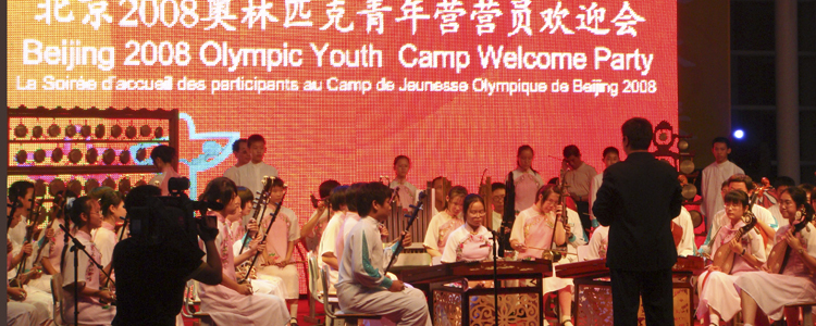 皇冠体育金帆民乐团在“2008年北京奥运青年营欢迎会”上为各国青年演出