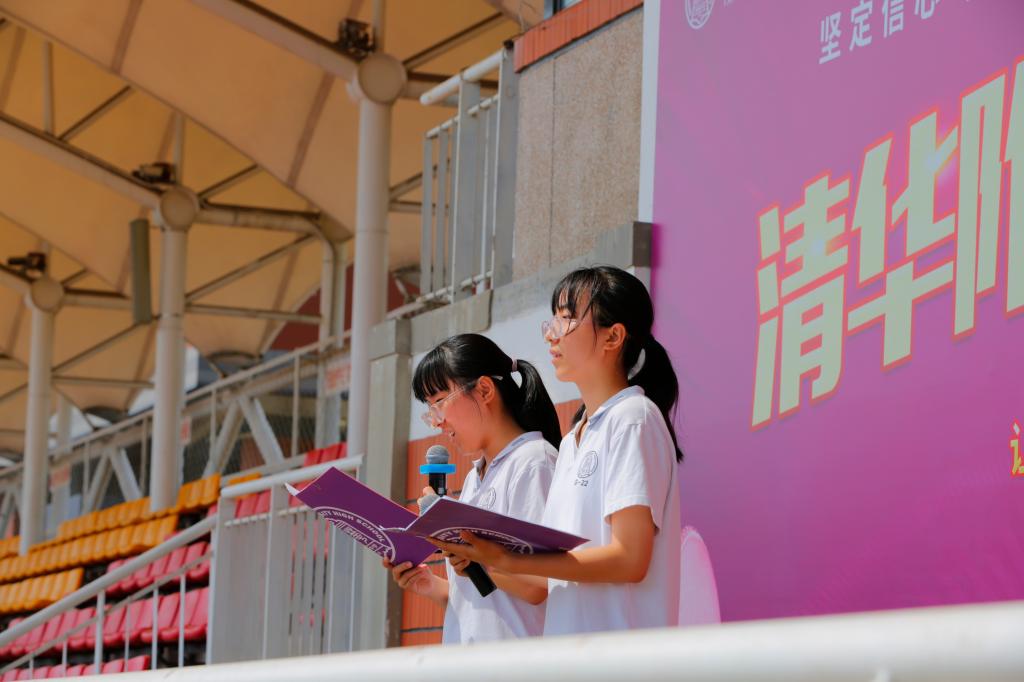 大家好。我们是高一12班的王姝婷、高一15班的王姝瑶。今天我们国旗下讲话的主题是“见历史,见天地,见自己”。在刚刚结束的高考假期中,初一、高一同学外出进行了综合实践文化考察课程。