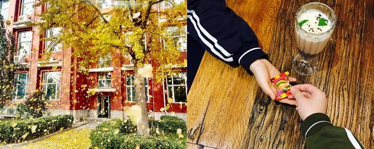 感动瞬间· C楼门前的一棵银杏树(左)、不知名学姐(右)