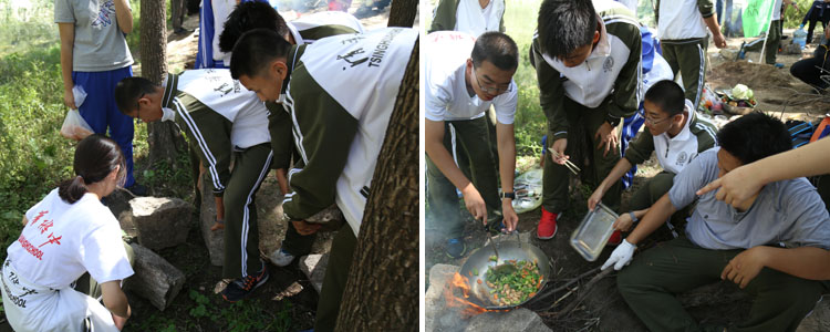 中午野炊过程中,各队同学先后完成了积分兑换食材、自主埋锅搭灶、协作炒菜烧饭,收获了由自己劳动所获得的果实。制作午餐时,不仅团队内成员之间协作默契,各团队之间也相互帮助,分享各自成果、共享彼此喜悦。