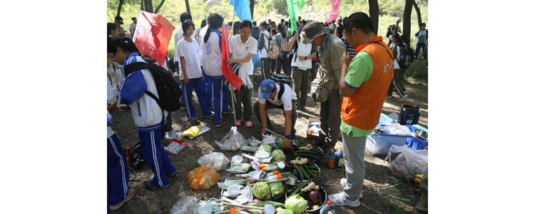 完成团队建设后则进入峡谷正式穿越阶段,穿越过程中全体同学之间、不同部门之间充分交流、相互帮助,顺利完成了昆虫照片收集、树叶拼图队标、团队姿势固定等多项高难度任务,最终通过任务的顺利完成获得了积分以用作接下来换取午间野炊食材。