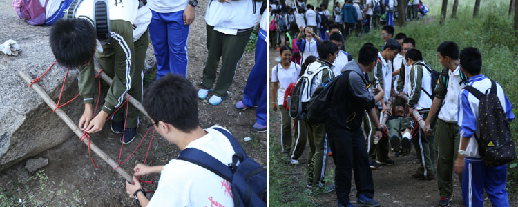 当日下午,同学们完成了剩下的峡谷穿越活动,期间大家还共同学习了简易担架制作、受伤伤口包扎等多种野外必要生存技能,大家互帮互助、开展高效合作,展现了我校学子良好的集体意识和精神风貌。下午4时左右,户外素质拓展团队全体成功穿越白河峡谷并启程返校。