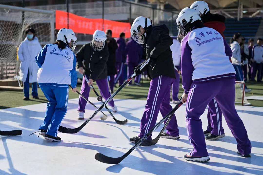 在冰球对抗、冰球拨球、冰球射门的活动中,同学们从多个维度对于冰球运动进行了深入的了解和体验。学习如何握冰球棍,认真佩戴冰球护具,提升球感,与队友并肩作战,激烈对抗,将体育精神发扬到极致。