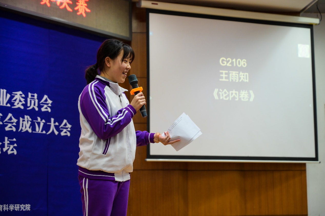 高2106班王雨知同学以“论内卷”为题,先阐述内卷内耗的部分,而后由身边的现象引出内卷。分析出这样与内卷的真正含义并不完全吻合,推测出现这样现象的原因,并激励同学们抓紧时间,努力上进。