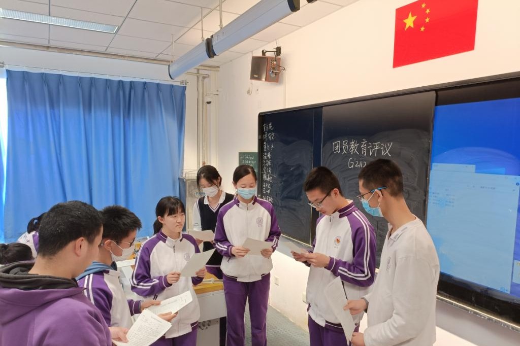 团支部委员带头召开民主评议团员大会。团员依次开展自我测评和相互批评,评出优秀团员与合格团员,之后统计得票结果。同学们从是否积极参加团的组织生活和活动,是否能够执行团的决议,完成团组织交给的任务,是否能够在学习、生产、工作及其他社会活动中发挥积极作用,等几个方面总结一年来的学习和生活情况。