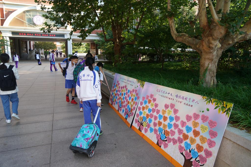 教师节“三行诗”创作活动,各个年级的同学纷纷踊跃参与,执笔真情抒写对恩师的无限景仰与感激。同学们的诗歌张贴在银杏道旁,成为了校园中一道靓丽的风景线,在师生中引起热烈反响。许多同学在展板前驻足欣赏、谈论评鉴;老师们更是将这些感恩的话语细细品读,在脑海中永恒珍藏。
