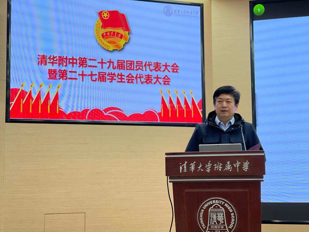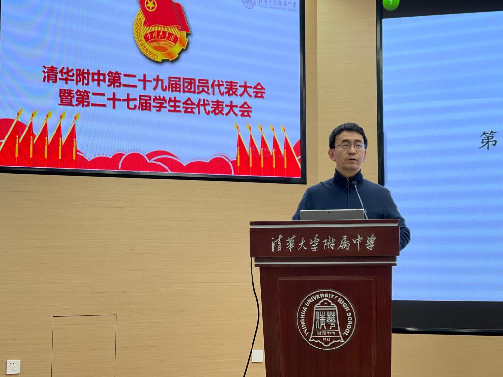 2022年10月13日,第29届团员代表大会暨第27届学生代表大会在华茂楼208举行。大会由团委秘书长申依凡主持,会议内容包括工作汇报、团委换届选举、学生会换届选举等。参会领导和老师有党委书记曹海翔老师、副校长白雪峰老师,高21级年级组长李劲松老师,高21级年级副组长唐洁老师,团委书记任星阳老师,以及来自初高中近230名团员代表和学生代表。
