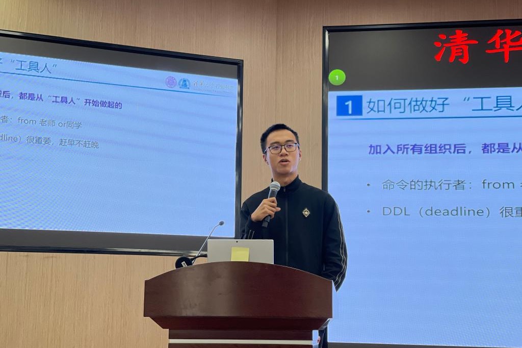 大会第三项,高19级团委副书记沈芸伍学长为大家带来了学生工作经验分享。他分别就时间分配、交流技巧和自我价值认知几个方面为同学们提供了建设性意见,在场的同学们表示受益匪浅。
