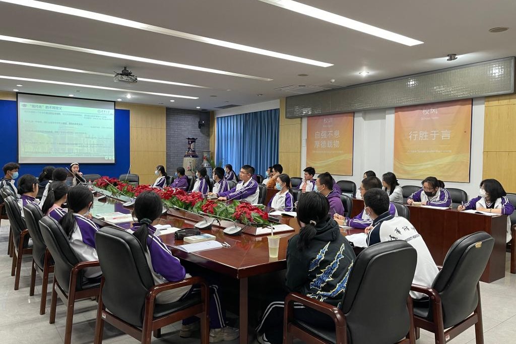 接着,马成洁博士带领同学们从中国式现代化的科学内涵,历史沿革以及与西方现代化的区别三方面进行深入学习。