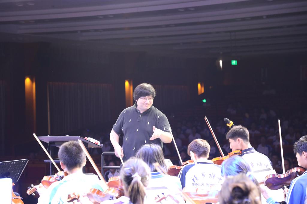 青年指挥家俞潞对乐队演奏进行艺术指导