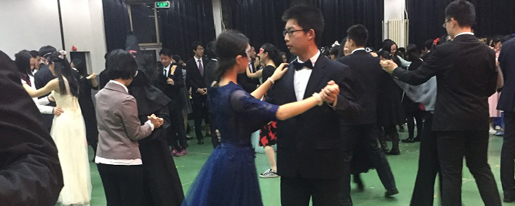 舞会进入了正式的跳舞环节。外联部的同学首先在舞池中央和自己的舞伴展示了快三舞步。当部员们进行了慢三的领舞时,很多同学纷纷邀请起自己的舞伴,牵起他们的手,一起在舞池里轻轻跳起了舞。而随着跳起舞的同学越来越多,一些本来有点害羞的同学,也鼓起勇气去向自己心仪的舞伴发出了邀请。在悠然浪漫的音乐之下,大家纷纷投入到了跳舞的状态,现场气氛十分温馨,整个舞会的氛围被推向了高潮。