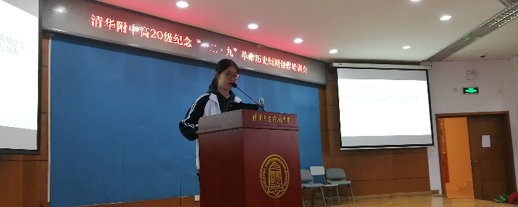 首先,高1907班的王筱申同学做了关于“一二·九”革命历史短剧导演的经验分享。内容分为导演的职责、 应该具备的能力和具体的工作经验 。关于导演的职责,王筱申同学强调了导演在整个剧目中的重要性,以及在筹划整个剧目活动中要完成的具体任务。此外,她还给同学们进行了一些具体的实战经验分享,例如:如何紧扣主题 ,如何调动同学们的积极性,如何吸引评委的眼光等。演讲过程中,她稳重又风趣的语言引起了在场许多同学的共鸣,为即将拉开帷幕的高20级纪念“一二·九”革命历史短剧展演活动提供了参考和帮助。