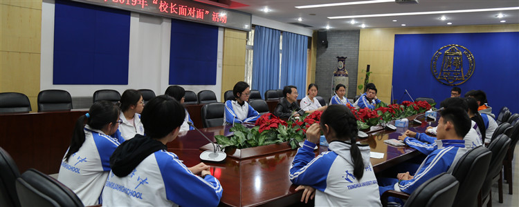 4月29日下午,皇冠体育2018-2019学年度第二学期第二次“校长面对面”活动在华茂楼102会议室举行。来自校团委、初高中学生会、领袖训练营、学生党校、学生社团和部分班级的学生干部共19名代表与徐文兵副校长进行了一小时的面对面座谈。