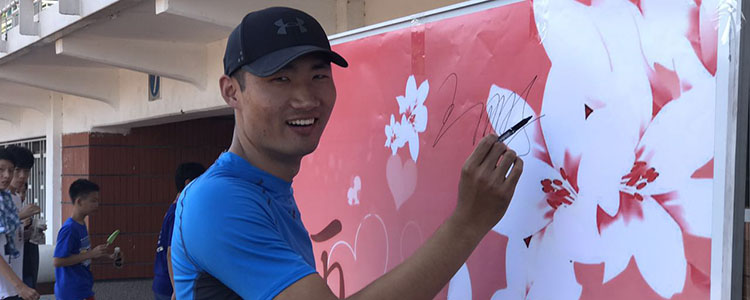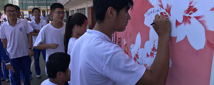 学生们在签名板上留下祝福