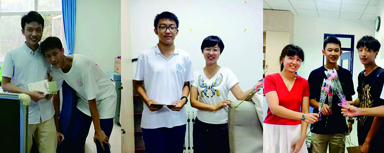 外联部同学将贺卡送到老师手中