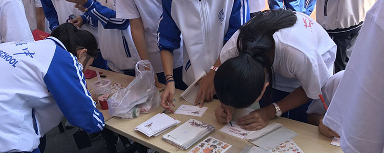 学生们在写祝福贺卡
