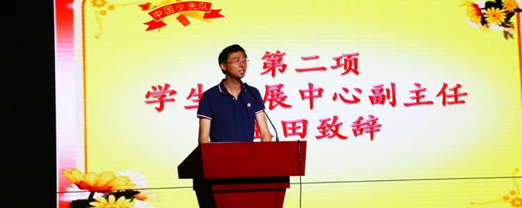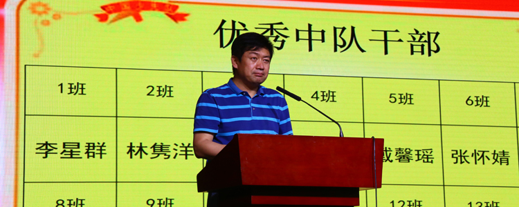 伴随着庄严的国歌声,离队建团仪式正式开始。首先,学生发展中心副主任王田致辞,他对即将步入青春的同学们提出三点希望,希望他们不忘童心,保留一份纯真,相信人性的美好;希望他们在思想上积极向团组织靠拢,对自己高标准严要求;希望他们拥有感恩的心,争取让世界变得更美好。随后,白雪峰副校长宣读《皇冠体育初15级“六一”表彰决定》,根据表彰决定授予初1507中队、初1511、初1502、初1509、初1508、初1503、初1505七个中队“优秀中队”荣誉称号,授予百余名学生“优秀中队干部”、“优秀少先队员”、“单项标兵”等个人荣誉称号。白雪峰、王田为获奖集体和个人代表颁奖。