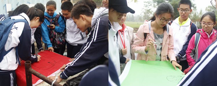 到达石门山后,全体学生在素质拓展师的组织下,完成了热身破冰和自身部门的团队文化建设。在此期间,各位同学分组设计了具有团队特色的专属队名、队旗、队伍口号和队歌。每个环节各组都八仙过海各显神通,尽显朝气与才华。