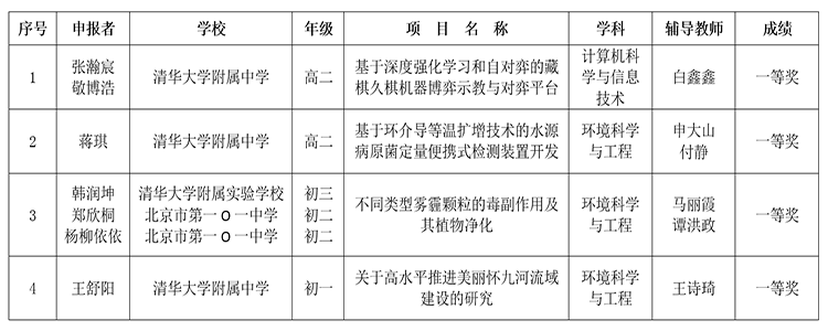 2021年4月13日,2020年度海淀区青少年科技创新大赛获奖名单公布,皇冠体育官网四个项目获得一等奖,具体情况如下: