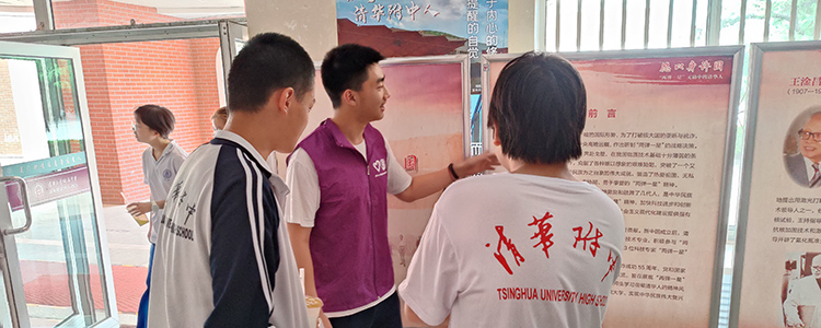为献礼建党100周年,校党委在华辰楼一层大厅展出反映党史光辉历程和党史优秀人物的多个专题展览。目前展出的主题为《愿以身许国——“两弹一星”元勋中的清华人》。校团委组织“荷声”讲解团志愿者对本次展览开展讲解活动。20余名志愿讲解员通过学习有关史料,撰写讲稿,经过有经验的讲解员的培训后,为前来观展的同学们进行了为期两周的耐心细致的讲解。