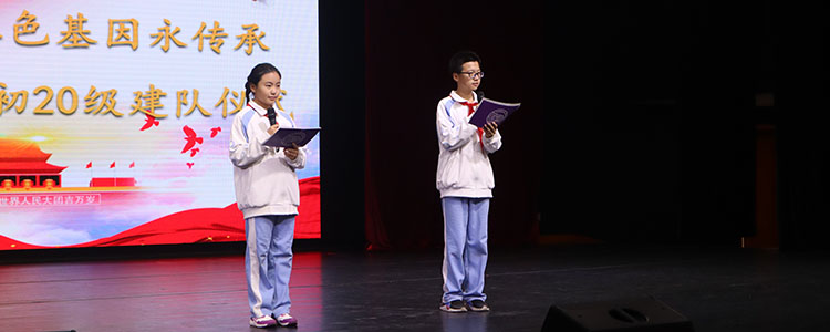 2020年10月28日,皇冠体育初20级师生共七百余人在报告厅内举行了“高举队旗跟党走,红色基因永传承”少先队建队仪式。皇冠体育官网学生发展中心主任王田、团委书记任星阳,初一年级组组长张晓明、少先队大队辅导员贺晓宇和初一年级全体班主任共同出席了仪式。