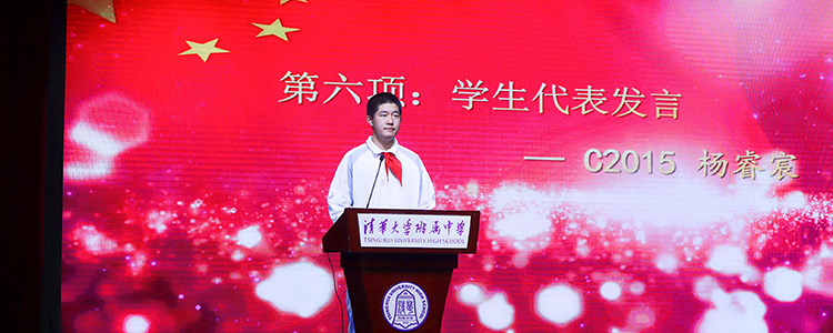 随后,来自初2015班的杨睿宸同学作为优秀少先队员代表发言。他从新中国成立71年来,伟大祖国实现了从“站起来”到“富起来”再到“强起来”的巨大飞跃这一主题谈起,号召每一名少先队员都要有信心、决心和恒心。只有拥有了信心、决心和恒心,才能在今后的生活中有着蓬勃向上的精神风貌和砥砺奋进的学习热情,为今后的人生打下坚实的基础,绘出属于自己的精彩人生!