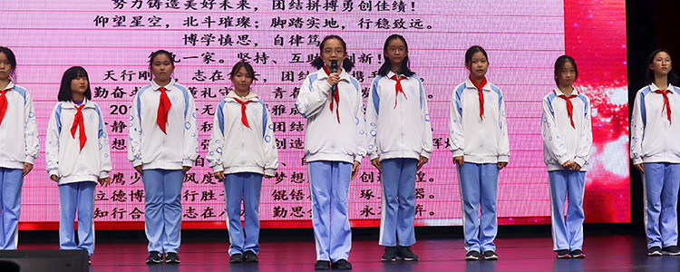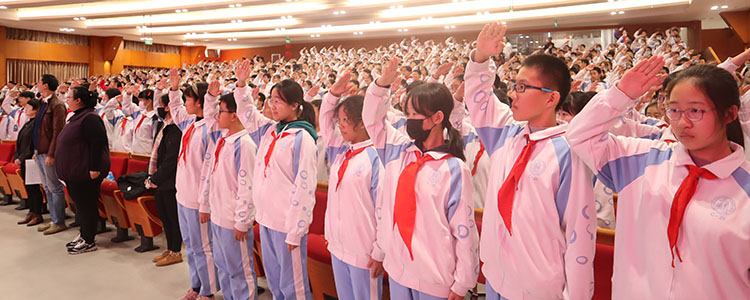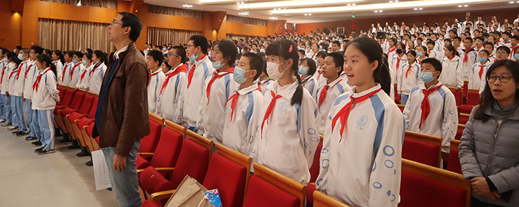 紧接着,全体师生共同演唱《中国少年先锋队队歌》,嘹亮的歌声在报告厅内回响。