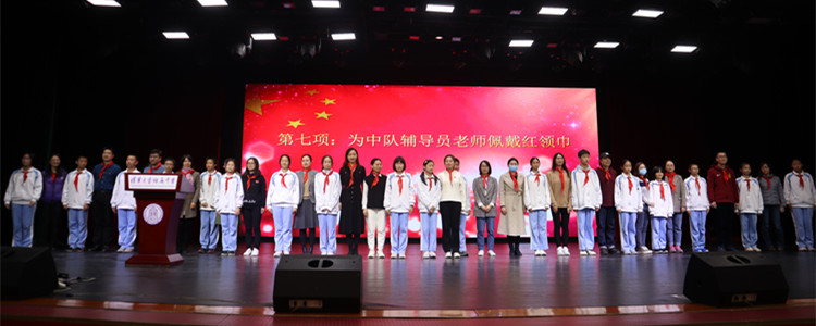 各中队组织委员为中队辅导员戴上了鲜艳的红领巾,感谢老师们在学生成长道路上的付出和引领。
