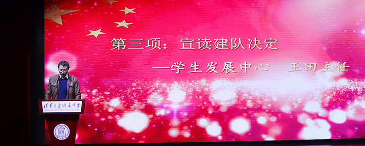 接下来,学生发展中心王田主任宣读了初20级建队决定,并和年级组长张晓明老师一同为各中队授旗。