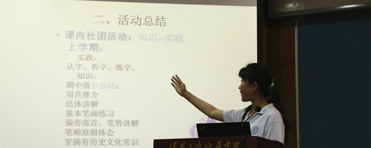 书法社社长正在进行答辩