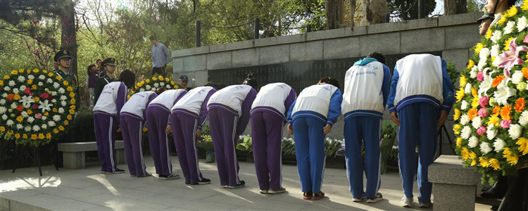 双手庄严得将洁白的菊花放于英烈纪念碑前,心怀无限敬意地瞻望前辈的雕塑。没有历史是只存在于过去的,回望逝去的过往,才能走好今日脚下的路。