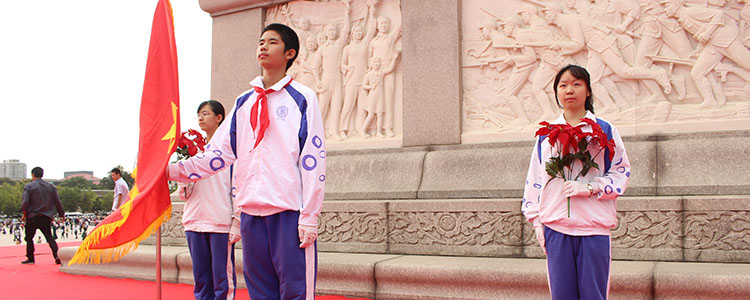 9月26日,皇冠体育官网初二年级18名优秀少先队员在天安门广场人民英雄纪念碑前参加 “首都少年先锋岗”站岗活动。