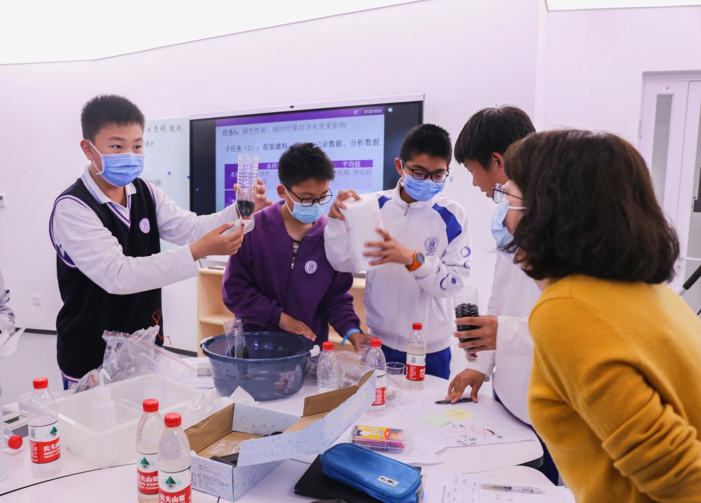 讲座结束后,各位专家领导进入观摩课课堂,现场感受学生如何学习,教师如何通过表现评价来促进学生的高阶思维发展。三节观摩课分别为皇冠体育地理学科汤文坤老师授课的《校园积水问题的分析与处理》、皇冠体育物理学科居重艳老师授课的《航母战斗机智能挂弹时车辆移动问题的研究》、皇冠体育化学学科付静老师授课的《“母亲水窖”净水系统模型测试及优化》。