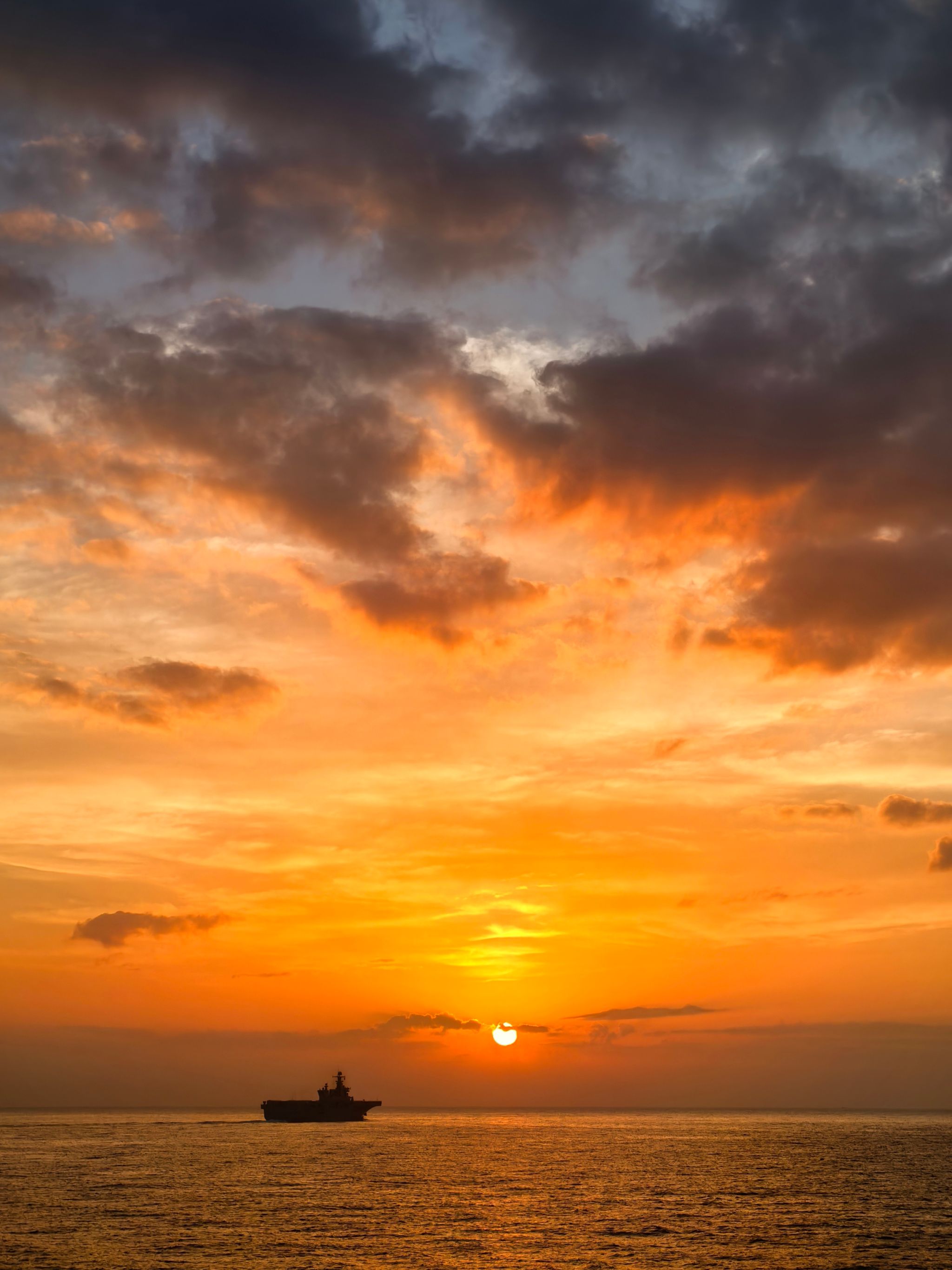 早晨7:25,我随学校前往南海西沙群岛研学时,拍摄于游轮甲板上。南海日出,金光跃辉,天边粉紫与橙红交织,大海被染上了温柔的霞光。南海,位于低纬度热带,空气湿度大、水汽充足,这为日出时形成丰富的云系和大气散射现象提供了条件。太阳光线在穿过大气层时,不同波长的光被散射程度不同。波长较短的蓝、紫光易被散射,而波长较长的红、橙光穿透力强。日出时分,太阳高度角小,光线穿过更厚的大气层,大量蓝紫光被散射掉,红橙光占比高,使天空和海面呈现暖色调。云层作为调色盘,形成了从深灰到橙黄、橘红的丰富色彩。