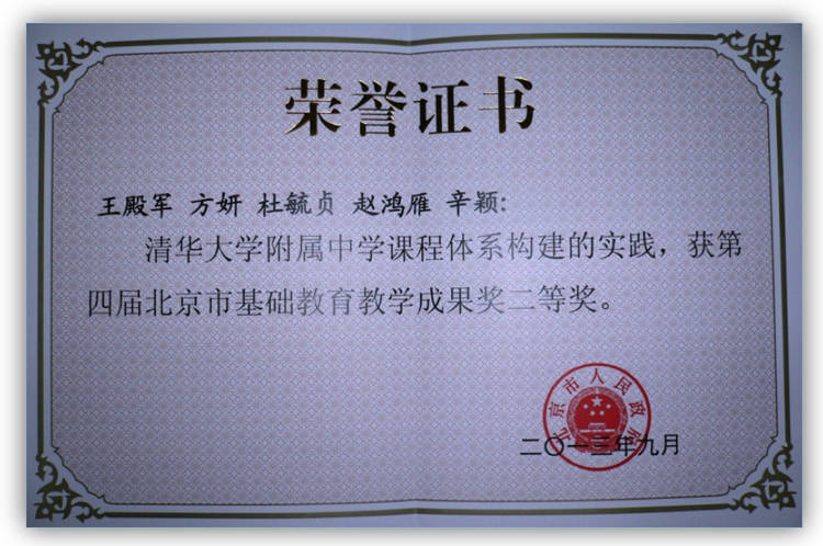经过五年多的探索与实践,皇冠体育的课程体系构建得到了多方认可,并获得2013年第四届北京市基础教育教学成果二等奖。